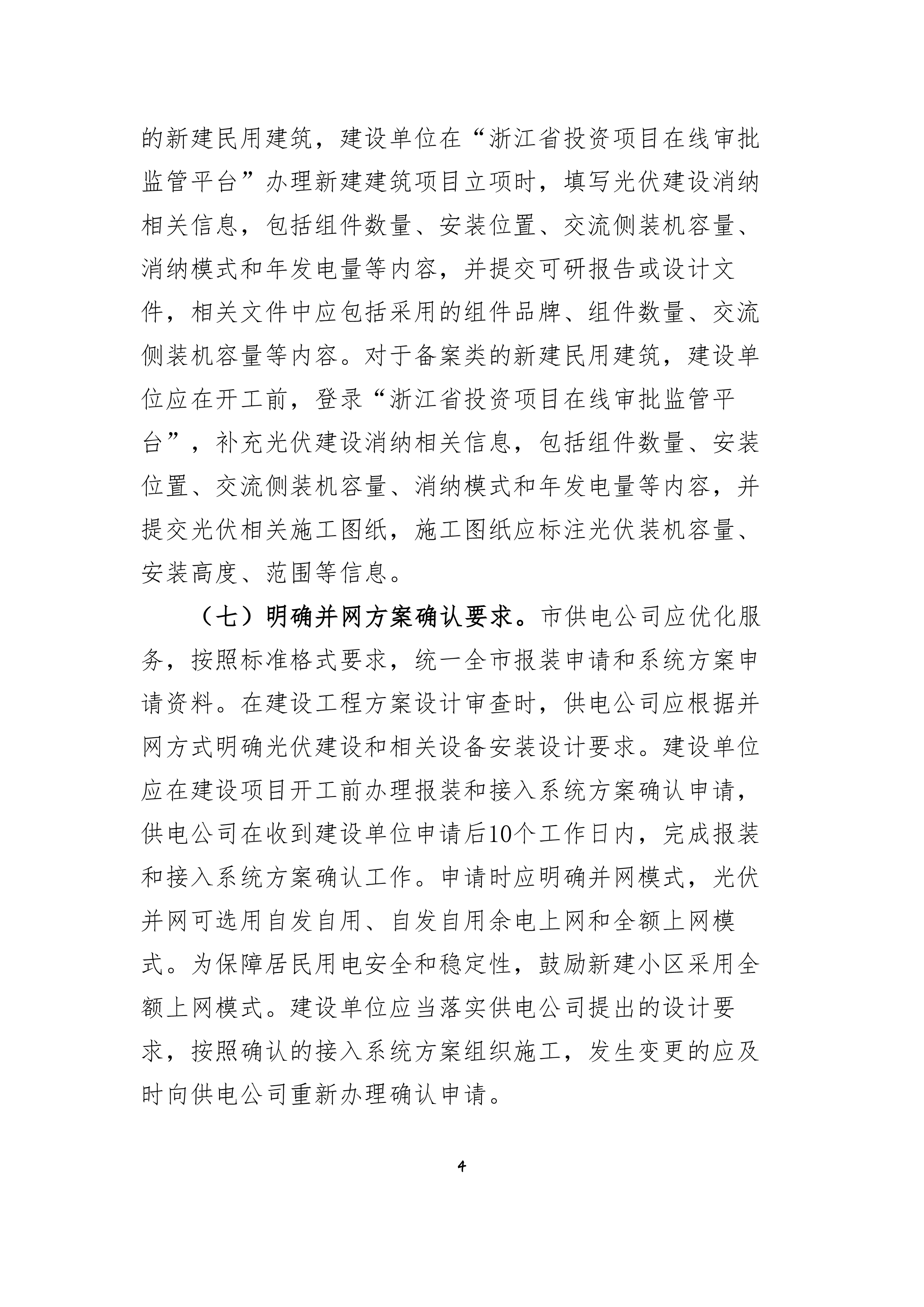 对于审批类和核准类的新建民用建筑,建设单位在“浙江省投资项目在线审批监管平台”办理新建建筑项目立项时,填写光伏建设消纳相关信息,包括组件数量、安装位置、交流侧装机容量、消纳模式和年发电量等内容,并提交可研报告或设计文件,相关文件中应包括采用的组件品牌、组件数量、交流侧装机容量等内容。