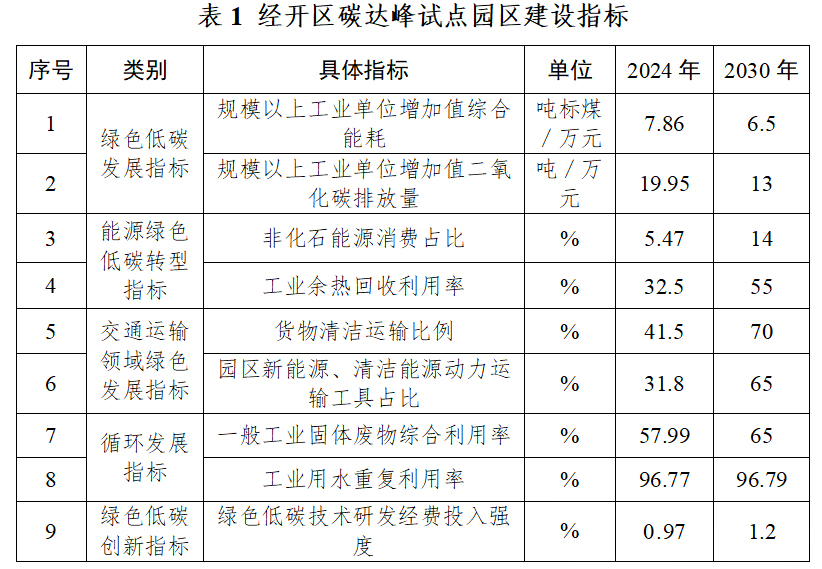 表1 经开区碳达峰试点园区建设指标
